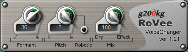 RoVeeはボイスチャンジャープラグインです。VSTエフェクトですので、CubaseやSonarなどのVSTに対応したアプリで使用します。音程とフォルマントを独立してコントロールして、男声/女声/ロボット風などの声を作り出す事ができます。