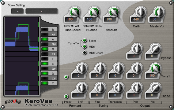 KeroVeeはピッチ補正プラグインです。VSTエフェクトですので、CubaseやSonarなどのVSTに対応したアプリで使用します。