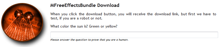ちなみにダウンロードする際には、ロボットよけの質問に答える必要があります。こんな感じ。質問のパターンがどれくらいあるのかは知りませんが、ちゃんと英文を読んで答えを書き込まないとダウンロードできません。