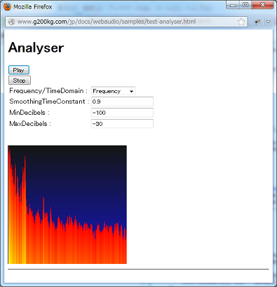 スポンサーリンク Web Audio API 解説 : Analyserの使い方 未分類 X Facebook 2013.02.23 解説にアナライザーノードの使い方のページを追加しました。 アナライザーの使い方