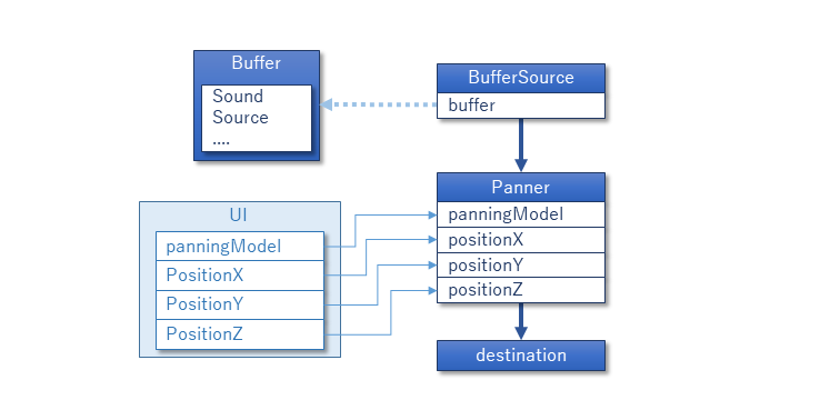 なお、この Panner には以前はドップラー効果を発生させるための音源の速度のパラメータがあったのですが、仕様上の問題から現在は削除されています。